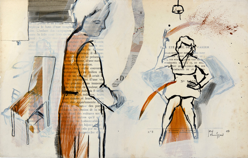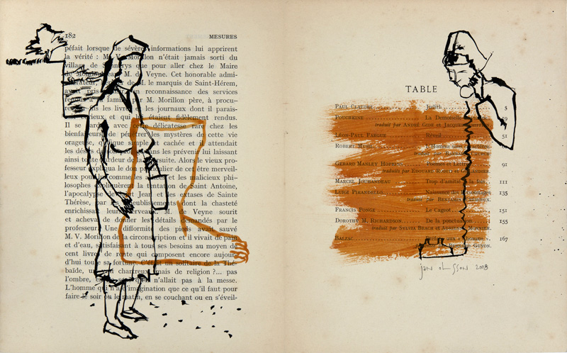 Dessins sur Mesures are drawings done from live models, cinema stills, and imagination over book pages from a first edition copy of the literary revue entitled “Mesures”.
