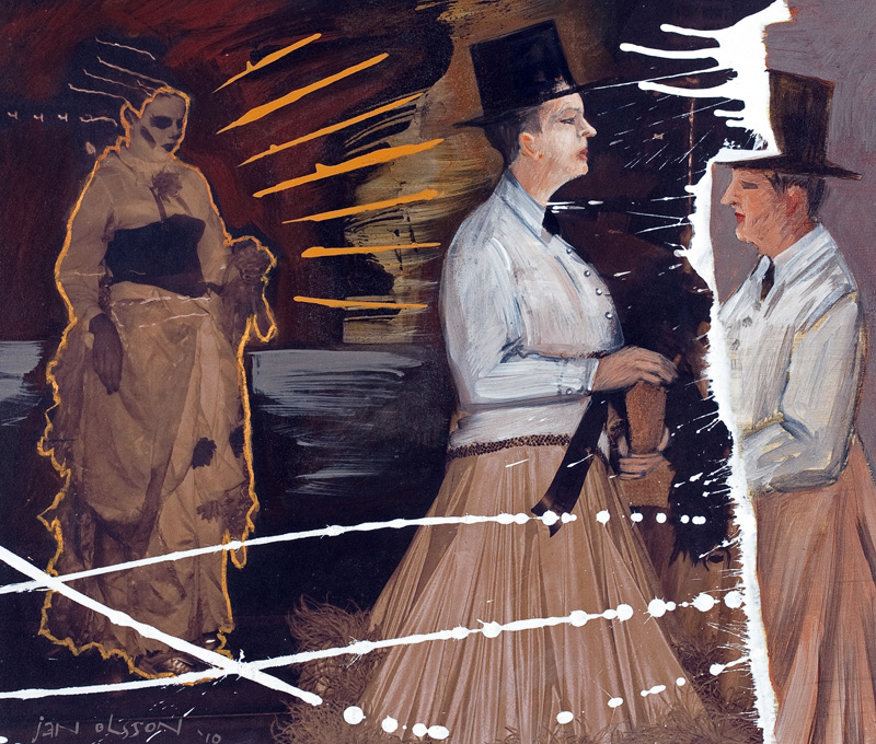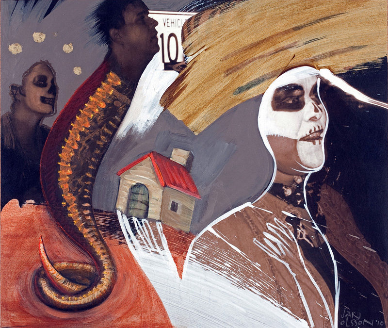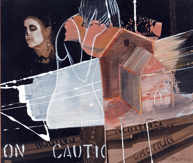 Acrylic, pastel and collage on paper over ink jet print