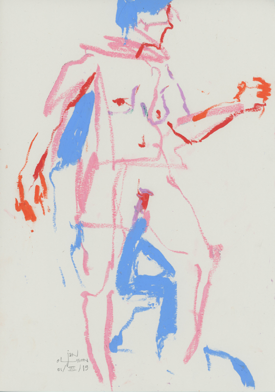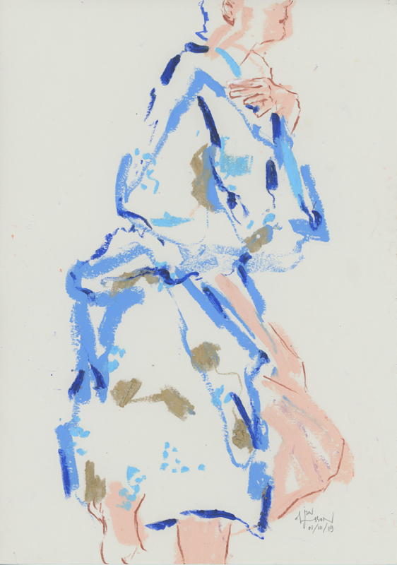 8 oil pastel and graphite drawings, A4 size, from a live model